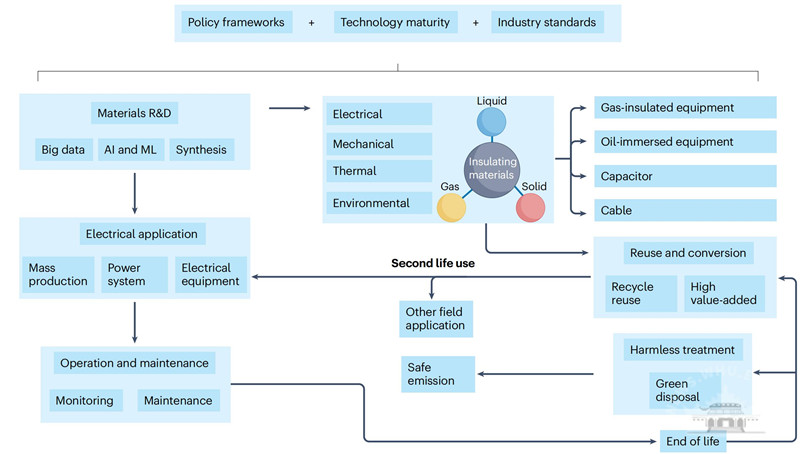The study provides an in-depth analysis of sustainable development pathways for three types of insulating materials, beginning by detailing the fundamental properties, typical applications, and low-carbon development principles of gaseous, liquid, and solid insulators.