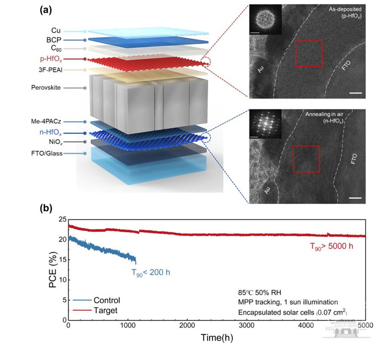 The research highlights the development of an atomic-scale interface bonding technique, where an annealed n-type HfOx interlayer is prepared at the hole transport layer interface.